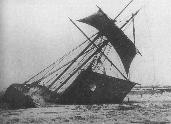 Rev. John O'Shea, Curate of Ardmore, was promptly on the scene. Seeing that the only hope of rescue could be carried out by boat, Fr. O'Shea, ,accompanied by a crowd of willing hands, procured a boat nearly a mile away from the wreck. It was drawn by horse through old boreens with all possible speed to the scene. Fr. O'Shea put on a lifebelt and called to the crowd for a crew. The men of Ardmore answered the call without hesitation, knowing that to get into an open boat in such appalling weather would have daunted the bravest man. But these men had answered many a call and this was to be no exception. Coastguards Barry and Neal, Constable Lawton, William Harris Hotel keeper, Patrick Power Farmer, John O'Brien boatman and Cornelius O'Brien Farmer, formed a crew and with all possible safeguards they pulled the boat into the foaming surf.