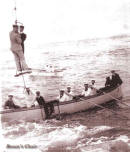 The first recorded service of a new life-boat was on the 6th. March 1826, when the barque Richard Pope was driven ashore in a fierce gale. At least two boats put out to the stricken barque, but the tremendous surf beat them back. The crew of fifteen realising the difficulties of their would-be rescuers, decided to try to save themselves. Five men clambered into a ships boat and attempted to make the shore, but the boat capsized in the breakers. Seeing what had happened, Alexander Douglas, an onlooker, swam through the surf in an effort to save life, but four of the men drowned. The remainder of the crew wisely stayed put, and eventually two boats reached them in safety. For his part in this hazardous and prolonged rescue Captain J.R.Morris R.N., a local coastguard, was awarded the Silver Medal of the R.N.L.I. (4)