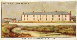 THE COASTGUARD STATION Smugglers & Smuggling Series' (N0. 32) (Text from back of card) The advantages of specially designed Coastguard Stations soon became apparent, and during the eighteen-thirties many were built in spots round the coast where smuggling was to be expected. Each man had a comfortable cottage for himself and his family, with a rather larger one for the officer, and a watch room. Only in Ireland were they made defensible. Everything had to be as clean as on shipboard, and naval discipline was maintained, with necessary modifications. For instance, a man whose wife quarrelled with her neighbours could be moved to another station at his own expense.