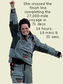After achieving the record time, the Isle of Wight-based yachtswoman having completed the 27,000-mile voyage said: "I feel exhausted but I'm elated to be here."