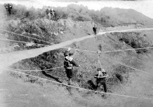 There were many regattas held around the Island during the summer months; one was the Ryde Pier Regatta where there was a special race for Coastguard crews. In 1906 the race was won by the Stokes Bay crew with Fishbourne second and East Cowes third. A postcard of the scene shows the new boathouse, the crews lined up for the start of the race and watching crowds on the Pier. There were similar races at other Island Regattas.