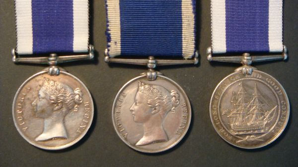 The most commonly encountered medal awarded to a member of the Coastguard service is the Royal Navy Long Service and Good Conduct Medal. This medal was first introduced in 1830 and was awarded when a ship ‘paid off’, on a quota basis. The number of medals granted depended on the ships crew size, and was awarded at a ratio of 1 medal per 100 men, and then only to men with 21 or more year’s unblemished service (in 1853 this was reduced to 20 years).