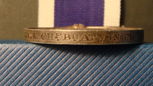 Despite being under Admiralty control from 1856, Coastguard men did not become eligible for the LSGC medal until 1873. Again a quota system was applied, but based on ‘Districts’ e.g. Kingstown had 4 awarded annually where Leith only had 1 every two years. Since the man had to do a minimum of 20 years service, it invariably followed that he had prior RN service. However it is still possible to encounter Wide Suspender medals named to CG men because they completed their final, qualifying period of service whilst in the CG service.