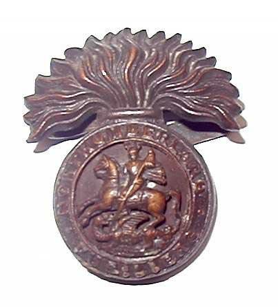 Ric Again. To amplify this request and provide reference., here is a similar cap badge I found on the web identified as a WWI cap badge worn by the Tyneside Irish Brigade of the Northumberland Fusiliers. Another, with a simple, plain bomb instead of a medallion, was identified as a grenadier's cap badge. I have no idea what this would signify in a Navy/Coastguard context in Ireland pre-1910. Again, please help.